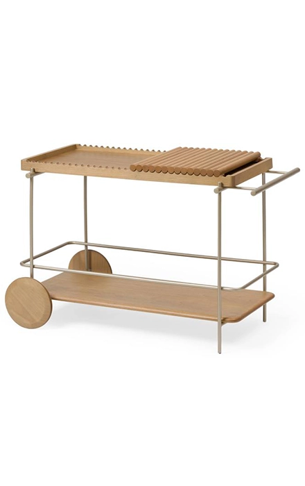 O carrinho é uma peça que une mobilidade e elegância. Versátil e funcional, pode transitar entre diferentes ambientes, servindo como apoio em momentos de convivência, bar ou suporte decorativo.